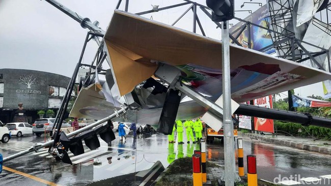 Baliho Jumbo di Sleman Ini Roboh Dihajar Angin dan Hujan Deras
