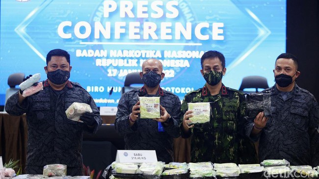 Jakarta - BNN kembali mengungkap kasus peredaran narkoba jenis sabu dan ekstasi. Kali ini BNN mengamankan sabu seberat 218,46 kg dan ekstasi sebanyak 16.586 butir.