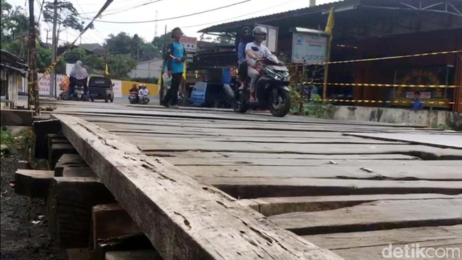Jembatan penghubung antara Kecamatan Cicurug, Cidahu dan Parungkuda tersebut diketahui sempat ambruk pada April 2021 silam. Pasca kejadian itu, pemerintah setempat kemudian mengganti jembatan aspal itu menggunakan alas kayu.