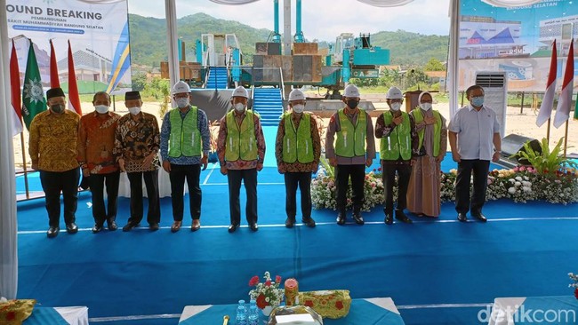 Kabupaten Bandung - Muhammadiyah membangun rumah sakit dan masjid di Ciparay, Kabupaten Bandung. Ground-breaking pembangunan tersebut dilakukan hari ini, Minggu (23/1/2022).