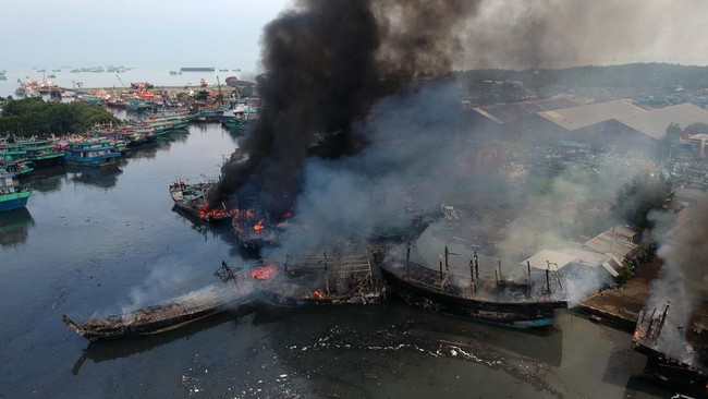 Belasan Kapal di Pelabuhan Tegal Dilalap Api