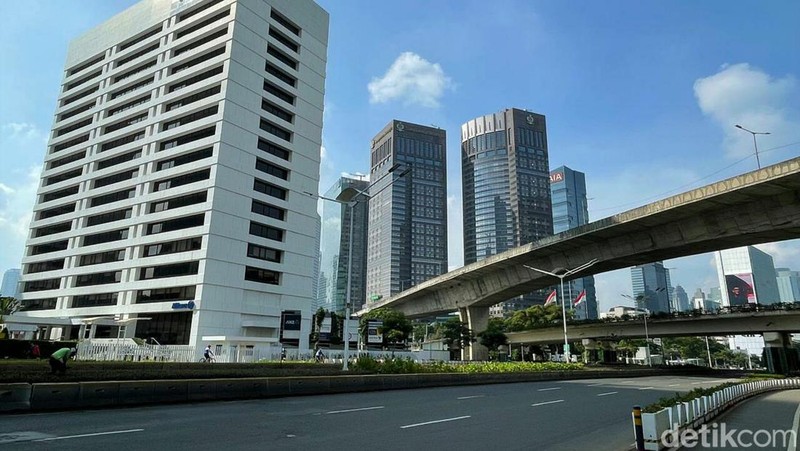 Lengangnya kawasan ibu kota salah satunya terlihat di sepanjang Jalan Sudirman-Thamrin.
