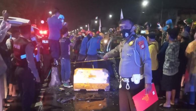 Jakarta - Mobil Camry B-1102-NDY terbakar usai menabrak separator busway di Senen, Jakarta Pusat. Pengemudi dan penumpangnya tewas dalam insiden itu.