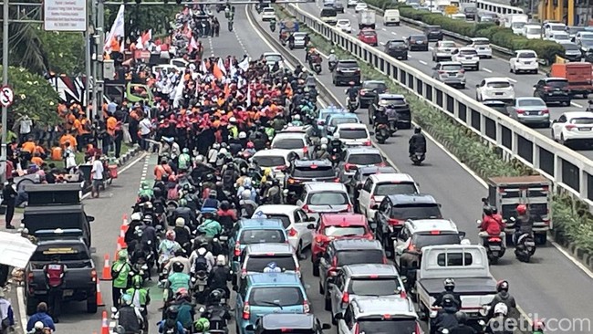 Buruh Demo di DPR, Lalin Jalan Gatot Subroto Macet