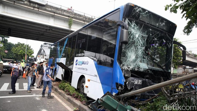 Begini Kondisi Bus TransJakarta Usai Tabrak Pembatas Jalan di Jaktim