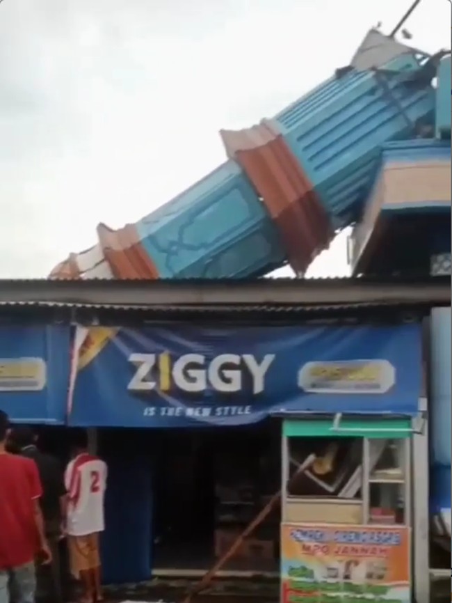 Bekasi - Sebuah menara masjid rubuh di Tambun Utara, Kabupaten Bekasi, roboh dan menimpa rumah warga. Peristiwa itu terjadi akibat hujan deras disertai angin kencang.