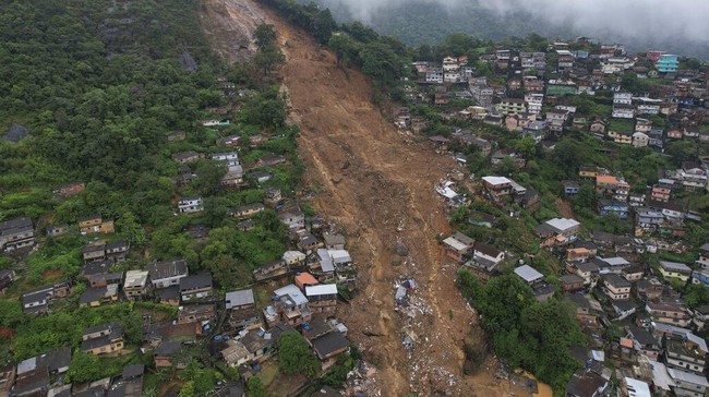 Foto udara memperlihatkan dahsyatnya terjangan tanah longsor yang menghantam kawasan padat penduduk di Petropolis.