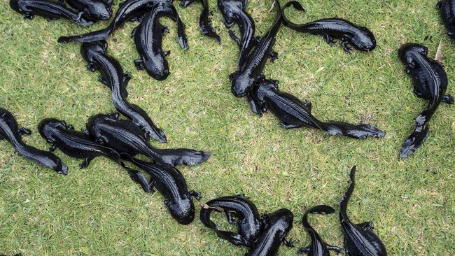 Meksiko - Salamander Meksiko alias axolotl dilepasliarkan kembali ke habitatnya. Amfibi langka khas Meksiko ini dilaporkan terancam punah.