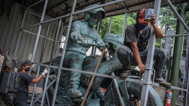 Bandung - Hari ini, Jumat (18/2), Patung Jokowi Naik Motor tengah dipersiapan untuk dikirim ke Sirkuit Mandalika. Yuk, intip persiapannnya!
