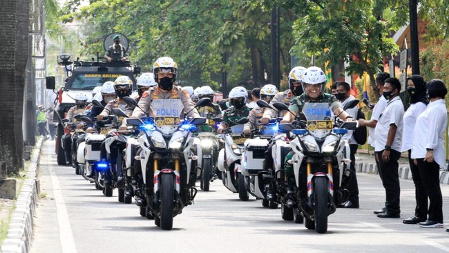 Ratusan personel Polda Riau, Senin (21/2/2022) pagi, turut meramaikan upacara ini, mulai dari Jalan Pattimura Pekanbaru, gerbang Mapolda Riau hingga di area kompleks Mapolda Riau.