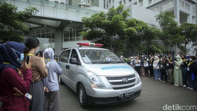 Jakarta - Tenagah kesehatan (nakes) RSDC Wisma Atlet Jakarta, Tiur Octavia gugur saat bertugas. Jenazahnya dilepas dari RSDC Wisma Atlet, Rabu (23/2/2022) menuju Lampung.