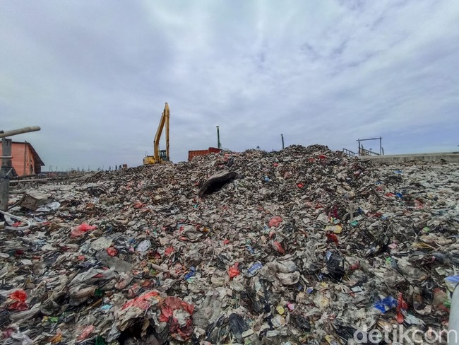 Jakarta - Tumpukan sampah mencemari lokasi proyek tanggul laut raksasa (giant sea wall) di Kalibaru, Cilincing, Jakut. Hamparan sampah pun menebarkan bau busuk.