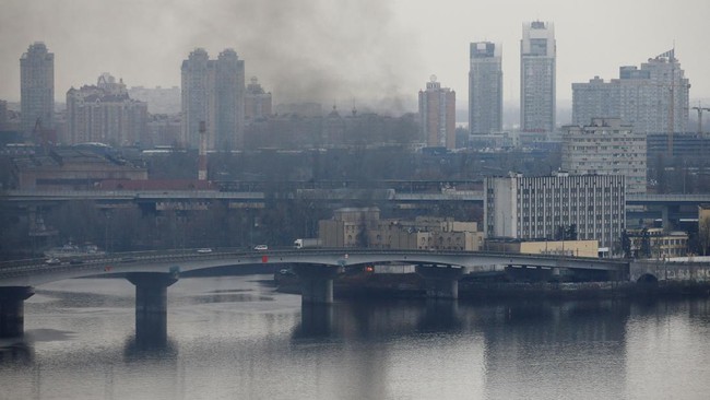 Jakarta - Kepulan asap mengepul dari kompleks gedung Kementerian Pertahanan Ukraina di Kyiv. Berikut penampakan foto-foto terkininya!