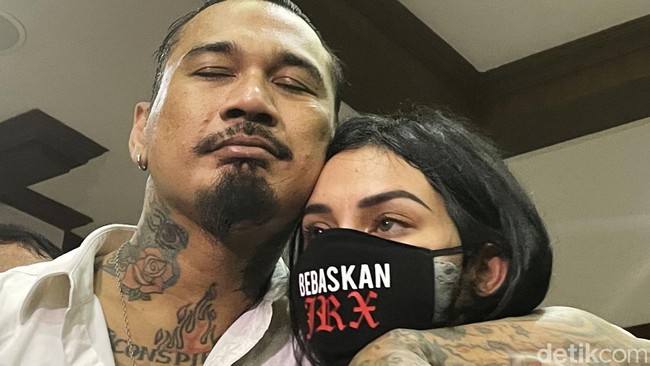 Momen Jerinx Peluk dan Kecup Istri Usai Divonis