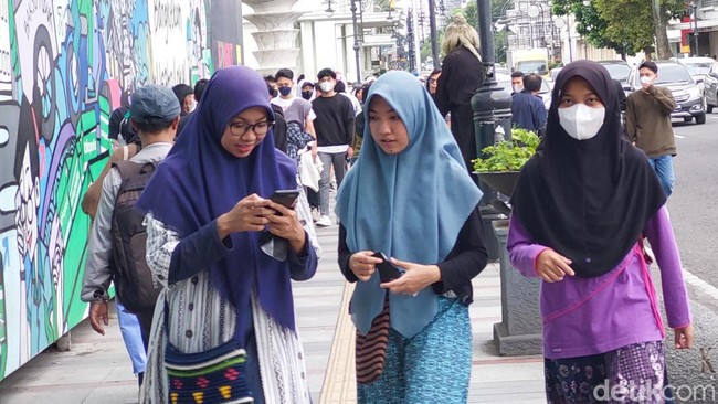 Bandung - Kawasan Jalan Asia-Afrika masih menjadi lokasi favorit bagi warga yang hendak berwisata ke Kota Bandung. Sayangnya, mereka abai prokes.