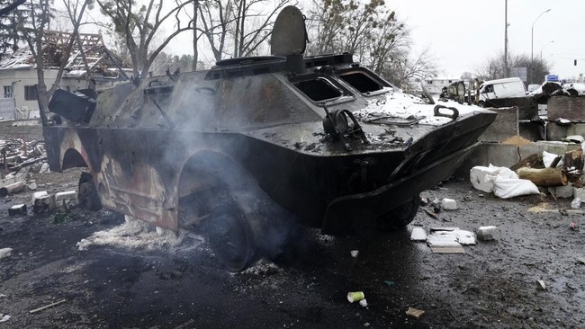 Ukraina - Invasi militer Rusia ke Ukraina telah memasuki hari keenam. Kendaraan tempur sepert tank dan panser banyak yang hancur hingga gosong dalam invasi tersebut.