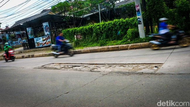 Awas! Jalan Beton Dekat Tol Brigif Depok Berlubang