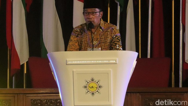 Bandung - Gubernur Jawa Barat Ridwan Kamil hadiri Munas IX AMPI. Di acara itu pria yang akrab disapa Kang Emil tersebut sempat menyebut 'Airlangga Presiden'.