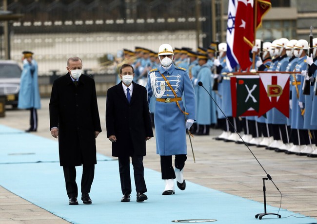 Ankara - Presiden Turki, Recep Tayyip Erdogan menerima Presiden Israel Isaac Herzog di Ankara. Pertemuan bersejarah dalam 14 tahun, pemimpin Israel berkunjung ke Turki.