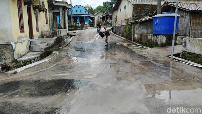 Magelang - Abu vulkanik Gunung Merapi sempat menyelimuti jalanan di Desa Paten, Kabupaten Magelang. Saat ini upaya pembersihan abu sudah dilakukan sebagian warga.