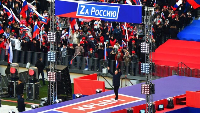 Ekspresi Vladimir Putin Saat Rayakan 8 Tahun Rusia Merebut Krimea