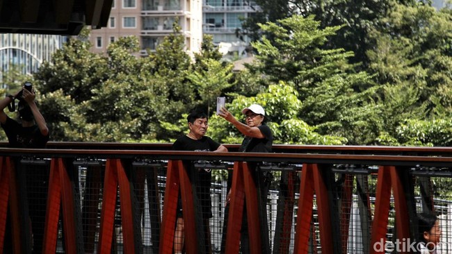 Jakarta - JPO Pinisi menjadi daya tarik bagi warga, tak heran jika banyak yang datang untuk berfoto. Namun sayang, masih ada sejumlah warga yang abai prokes.