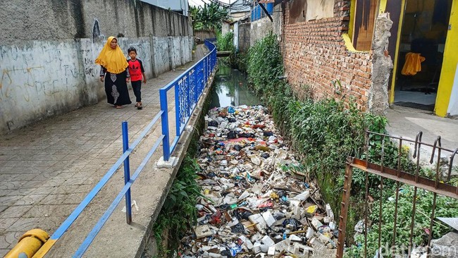 Jorok! Sungai Cikahiyangan Bandung Dipenuhi Sampah