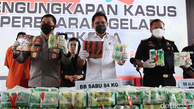 Jakarta - Dittipidnarkoba Bareskrim Polri mengungkap peredaran narkotika di Aceh. Alhasil, polisi menyita barang bukti sabu seberat 84 kg dan ganja seberat 20 kg.