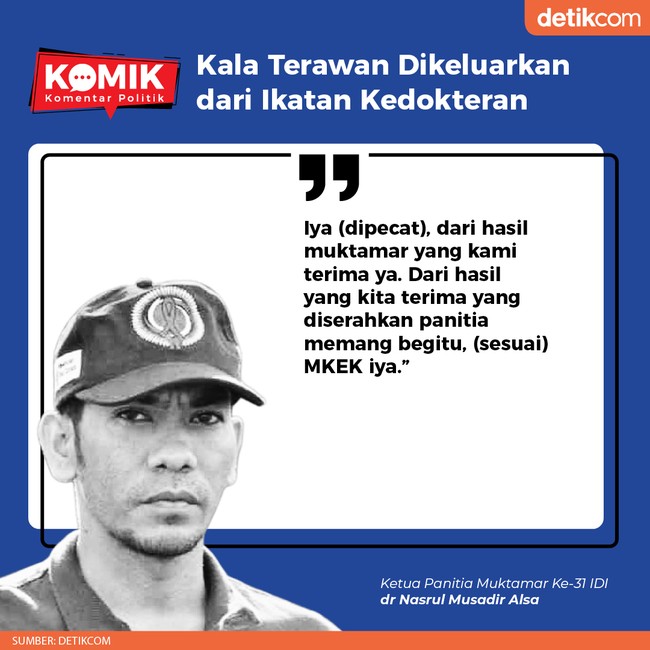 Ketua Panitia Muktamar Ke-31 IDI dr Nasrul Musadir Alsa mengonfirmasi pemecatan terhadap Terawan. Pemecatan ini juga diklaim sesuai dengan putusan MKEK.
