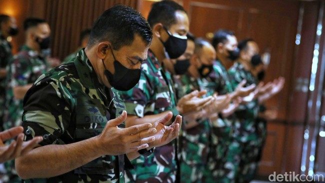 Jakarta - TNI AL melakukan doa bersama di kawasan Mako Kolinlamil, Tanjung Priok, Senin (28/3) untuk dua prajurit TNI yang gugur saat bertugas di Kabupaten Nduga, Papua.
