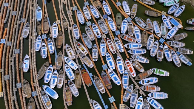 Saat Sungai Suci di India Dipenuhi Perahu yang Bersandar