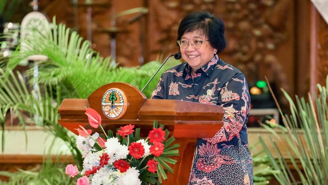 Jakarta - Menteri LHK Siti Nurbaya hadir dalam puncak Hari Bakti Rimbawan KLHK ke-39 Tahun 2022. Siti mengajak masyarakat meningkatkan kepedulian terhadap lingkungan.