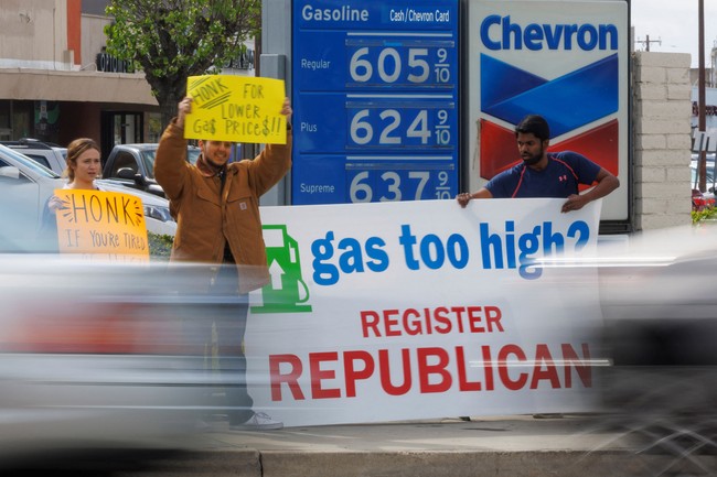 California - Harga BBM di AS tengah mengalami lonjakan signifikan. Momen tersebut dimanfaatkan kubu opsisi, Partai Republik untuk menggaet anggota. Langsung di SPBU !