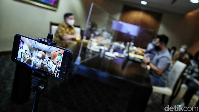 Pimpinan Redaksi detikcom Alfito Deannova Ginting, Ketua Harian Kompolnas Irjen Pol Purn Benny Josua Mamoto, dan Komisioner Kompolnas Poengky Indarti melakukan rapat persiapan acara Hoegeng Award di Menara Bank Mega, Tendean, Jakarta Selatan, Jumat (1/4/2022).