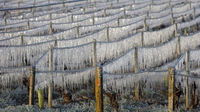 Prancis - Suhu dingin dan embun beku dapat merusak perkebunan anggur. Sejumlah petani di Prancis punya cara yang unik untuk melindungi kebun mereka. Yuk lihat.