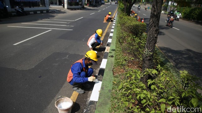 Bekasi - Separator di Jalan Cut Mutia, Bekasi, dicat lagi. Pengecetan ini dilakukan untuk mempercantik dan memberikan keamanan bagi pengguna jalan.