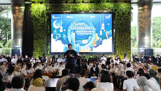 Jakarta - Menteri BUMN Erick Thohir menjalani Safari Ramadan Kementerian BUMN bersama TelkomGroup di Vertical Garden, The Telkom Hub Jakarta. Apa saja sih yang dilakukan?