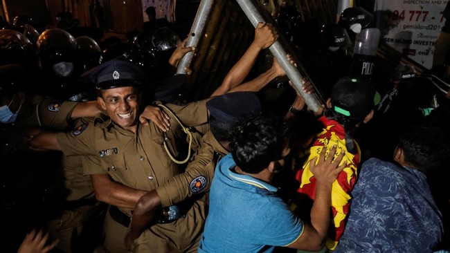Sri Lanka - Bentrokan terjadi antara polisi dan demonstran di dekat rumah PM Sri Lanka, Mahinda Rajapaksa. Massa turun ke jalan saat krisis ekonomi melanda negeri tersebut.