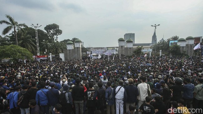 Jakarta - Demo di gedung DPR Jakarta pada 11 April didominasi massa mahasiswa. Namun aksi berujung ricuh hingga pengeroyokan terhadap pegiat media sosial Ade Armando.