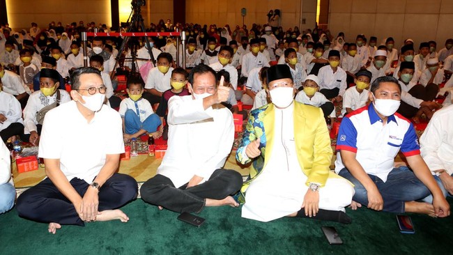 Sedikitnya 300 anak yatim hadir mewakili dari 1500 anak yatim yang akan menerima santunan dengan tetap menjalankan prokes mengingat kondisi masih pandemi.