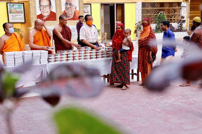 Bangladesh - Biksu Budha membagikan makanan kepada warga muslim untuk berbuka puasa di Kuil Budha Dharmarajika, Dhaka, Bangladesh. Mewujudkan kerukunan antar umat beragama.