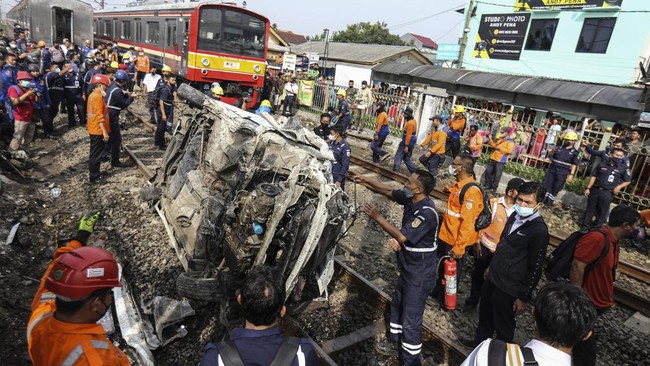 Foto-foto Proses Evakuasi Mobil Tertabrak KRL di Depok