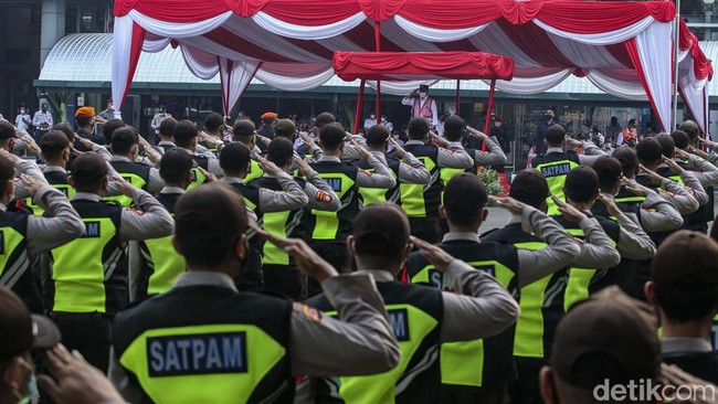 Jakarta - Apel Gelar Pasukan Angkutan Lebaran 1443 H / 2022 M digelar di Stasiun Gambir, Jumat (22/4/2022). Apel ini dipimpin oleh Menhub Budi Karya.