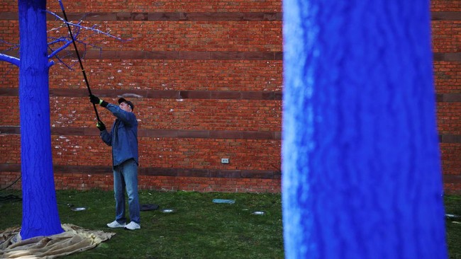 Rayakan Hari Bumi, Pohon di Museum Ini Dicat Warna Biru