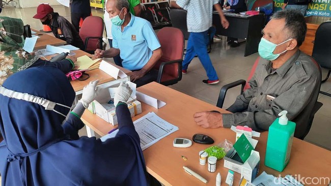 Sukabumi - Puluhan sopir bus di Terminal Tipe A KH Ahmad Sanusi, Kota Sukabumi jalani pemeriksaan kesehatan. Hal ini dilakukan jelang puncak arus mudik 2022.