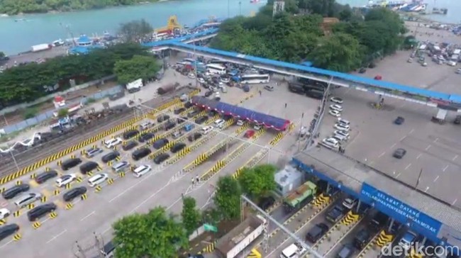 Potret Udara Antrean Kendaraan di Pelabuhan Merak Saat H-3 Lebaran