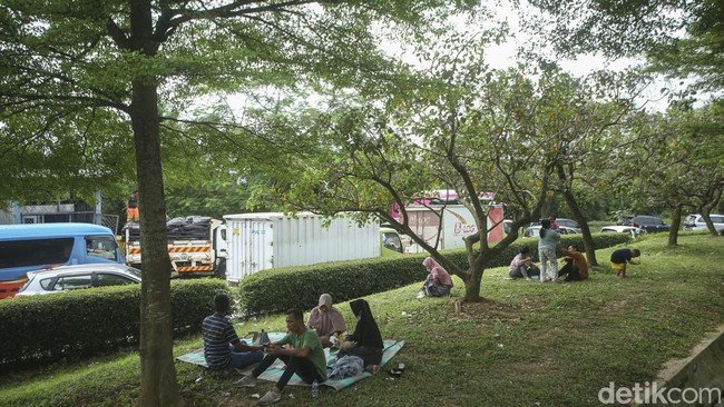 Potret Pemudik Melepas Lelah di Taman Rest Area