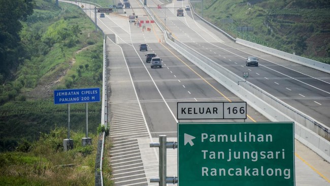 Kabupaten Sumedang - Pada arus mudik H-3 Lebaran 2022, kendaraan yang menuju Sumedang di Jalan Tol Cisumdawu terpantau lengang.