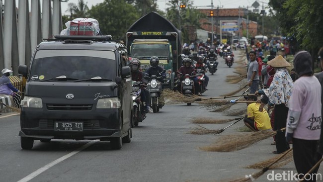 Indramayu - Warga di sekitar Jembatan Sewo, Indramayu, memiliki tradisi saat momentum mudik lebaran. Mereka kan menyapu koin-koin yang dilempar oleh pemudik yang melintas.