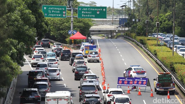 Jakarta - Polisi menutup ruas Tol Cikampek dari arah Tol Dalam Kota (Dalkot) dan Tol Tanjung Priok. Hal ini dilakukan untuk mengantisipasi arus balik Lebaran 2022.